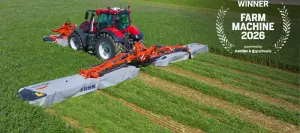 Model GMD 15030 otrzymał nagrodę FARM MACHINE 2026 podczas targów AGRITECHNICA 2025 w Hanowerze. Dzięki szerokości roboczej wynoszącej 14,50 metra maszyna zapewnia nawet o 50% większą wydajność w porównaniu z tradycyjnymi zawieszanymi kosiarkami dyskowymi, których szerokość wynosi zazwyczaj od 9,00 do 10,00 metrów.