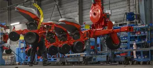 Zautomatyzowana linia produkcyjna tarcz wysiewających wykorzystuje zaawansowane technologie, w tym roboty wieloprzegubowe oraz roboty typu SCARA do precyzyjnego pozycjonowania elementów. System wizyjny (3 kamery) kontroluje jakość na każdym etapie: od znakowania, przez obróbkę, gratowanie, aż po spawanie i mycie. Na końcu linii montażowej operatorzy przeprowadzają testy z użyciem nasion kukurydzy na każdej sekcji wysiewającej. Kontroli podlegają również podzespoły elektroniczne i mechaniczne (wentylatory, przekładnie).