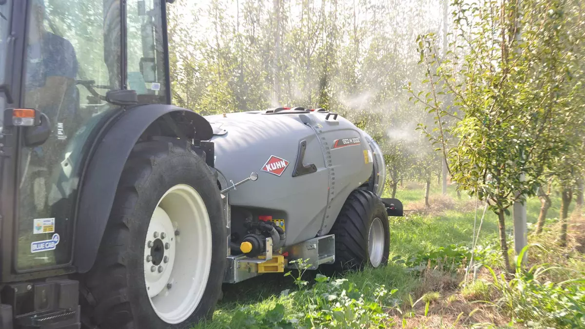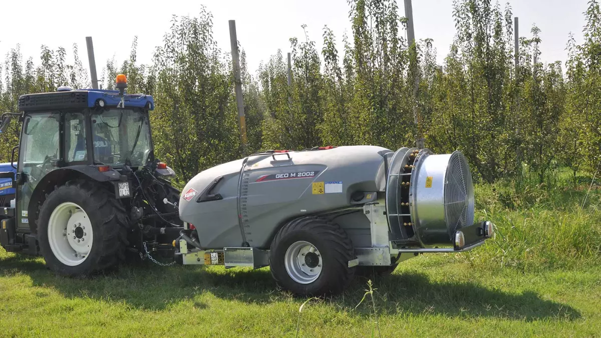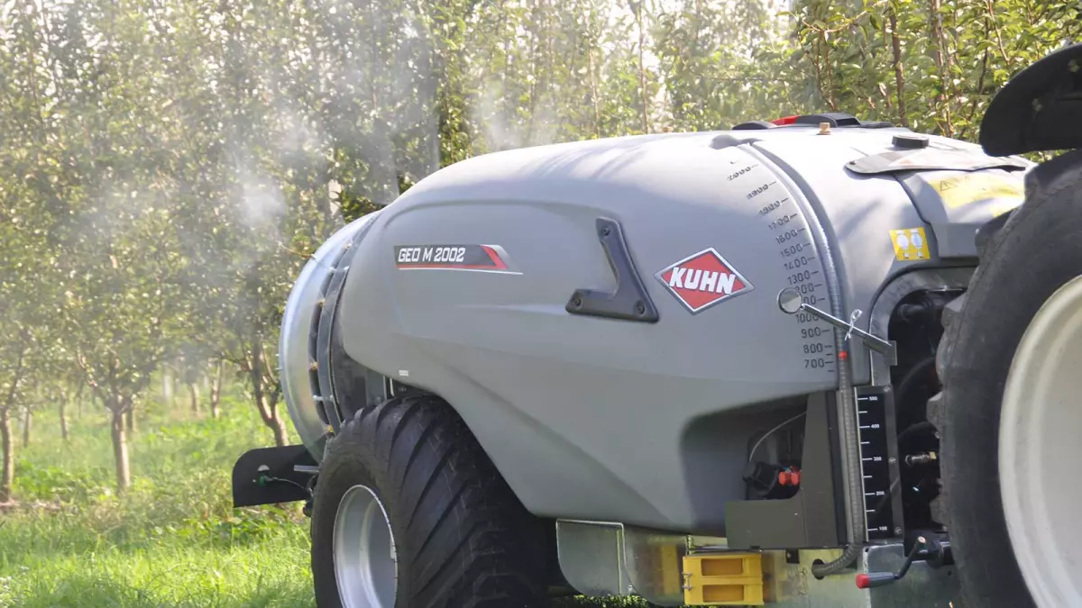 Opryskiwacze zaczepiane GEO M 2 firmy KUHN to średniej klasy opryskiwacze do winnic i sadów. Dzięki zbiornikowi o pojemności od 1000 do 2000 litrów i tylnemu wentylatorowi zasysającemu o średnicy 900 mm, opryskiwacz zaczepiany GEO M 2 jest idealnym rozwiązaniem do oprysków o dużych objętościach, a jednocześnie jest łatwy w obsłudze.