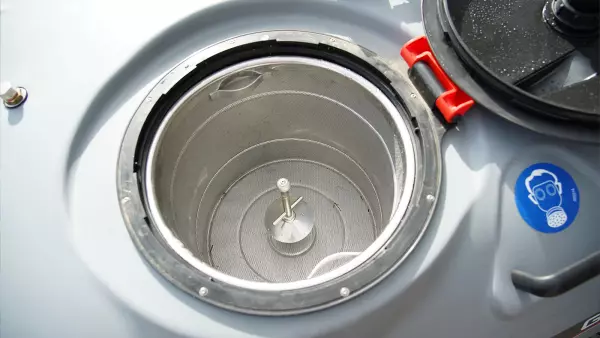 Zintegrowany system z koszem mieszającym sprawnie rozpuszcza lub rozcieńcza dodawane produkty, zapewniając idealnie jednorodną ciecz roboczą w zbiorniku. Wewnątrz kosza mieszającego można nawet zainstalować płuczkę do pojemników, aby opłukać puste pojemniki.