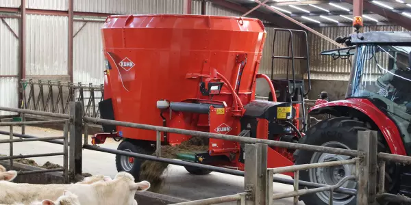 Wóz paszowy PROFILE 1 DL z 1 pionowym ślimakiem i bocznym wysypem paszy, wyposażony w szeroki zbiornik. Dostępny ze zbiornikami od 9 do 15 m3, dla stad liczących od 45 do 110 sztuk bydła mlecznego.
