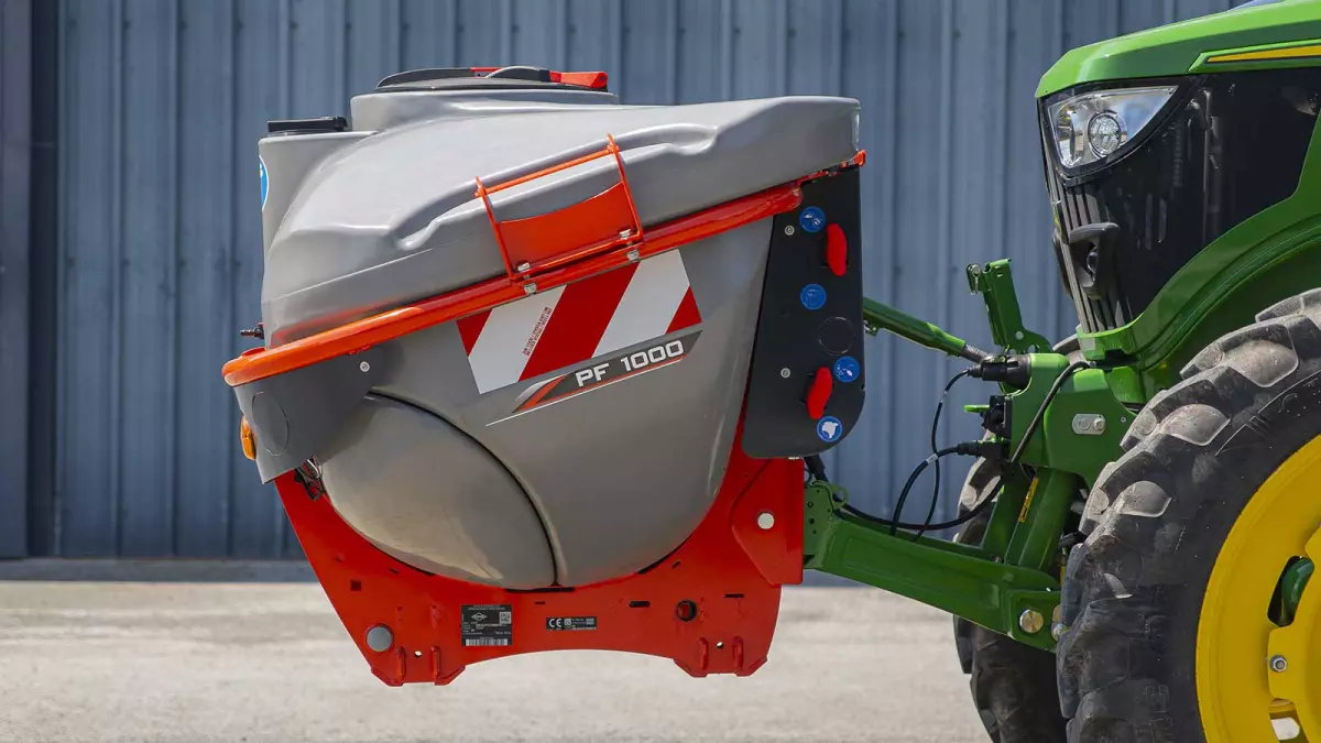 PF to nie jest zwykły zbiornik frontalny. Został zaprojektowany w oparciu o rozwiązania stosowane w opryskiwaczach, które zapewniają mu duży zasięg i niezależność. Układ cieczowy w tym modelu obejmuje rozwadnianie środków chemicznych, mieszanie i płukanie. Dobrze przemyślana konstrukcja zapewnia operatorowi maszyny doskonałą widoczność z przodu ciągnika oraz widok na zamontowany z boku wskaźnik poziomu cieczy.