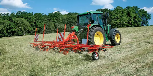 Zgrabianie przetrząśniętego pokosu jest ważnym elementem w produkcji zdrowej i wysokojakościowe paszy. W szerokiej ofercie zgrabiarek oferowanych przez firmę KUHN z pewnością znajdziesz model dla siebie. Oferujemy zgrabiarki jednokaruzelowe, dwukaruzelowe z bocznym lub centralnym formowaniem wału lub zgrabiarki z 4 karuzelami. Dostępne są także zgrabiarki z przenośnikiem taśmowym dedykowane średnim i dużym gospodarstwom rolnym. Zgrabiarki KUHN wyposażone są w wiele innowacyjnych rozwiązań, w tym system STABILIFT, dzięki któremu karuzele są blokowane w podniesionej pozycji, co wpływa na stabilność maszyny. Nasze zgrabiarki to także doskonała stabilność podczas pracy, co zawdzięczają specjalnej konstrukcji.