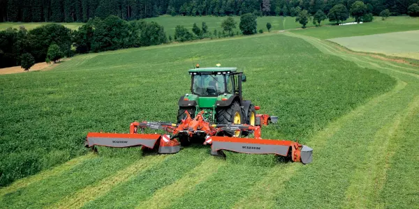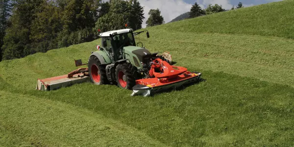 Dokładne kopiowanie nierówności terenu to bezwzględny warunek równego koszenia i uzyskania odpowiedniej jakości paszy podczas pracy na nierównym terenie i pochyłościach. Frontalne kosiarki dyskowe ze zgniataczem pokosu dzięki zaawansowanym rozwiązaniom technicznym, zapewniają duży zakres ruchu zespołów koszących w płaszczyźnie pionowej i pod kątem. Frontalne kosiarki dyskowe ze zgniataczem pokosu to doskonałe kopiowanie terenu oraz wysoka jakość paszy.