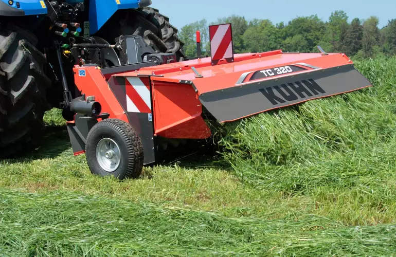 System zbierania z wirnikiem zbierającym, z palcami w kształcie litery V oraz 6-pozycyjnymi deflektorami gwarantuje zachowanie wartości odżywczych produktu oraz zapobiega ich zanieczyszczeniu. Możliwość regulacji intensywności zgniatania oraz pozycji każdego deflektora z osobna daje użytkownikowi wszechstronność zastosowań, jaka potrzebna jest w codziennej pracy z maszyną.