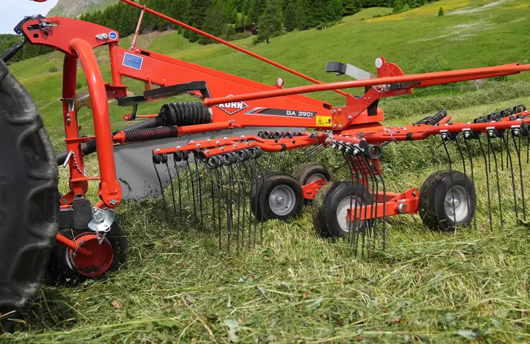 Aby umożliwić zbieranie paszy na całej szerokości zgrabiania, modele GA 3901, GA 4201 i GA 4401 są wyposażone w 10, 11 i 12 ramion z palcami. Duża liczba ramion jest podstawowym warunkiem wysokiej jakości zgrabiania. Ramiona z palcami zgrabiającymi są podwójnie gięte i zamontowane stycznie, co oznacza, że uzyskują kąt 90° bardzo późno. Stromo nachylona krzywka sprawia, że podnoszenie palców odbywa się bardzo szybko, jest opóźnione i nie wymaga dużej siły do wykonania obrotu. Wałki pokosowe są bardziej jednorodne, mają większą objętość i są równe. Jakość formowania wałków jest lepsza nawet przy dużej prędkości jazdy (pasza nie jest wypychana poza wałek).