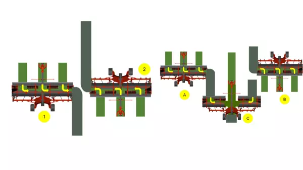 | Centralny, na jedną stronę, na dwie strony lub centralny+na jedną stronę | Centralny, na jedną stronę, na dwie strony lub centralny+na jedną stronę | Centralny, na jedną stronę, na dwie strony lub centralny+na jedną stronę | Pośrodku, z boku, po obu stronach lub pośrodku i z boku jednocześnie |