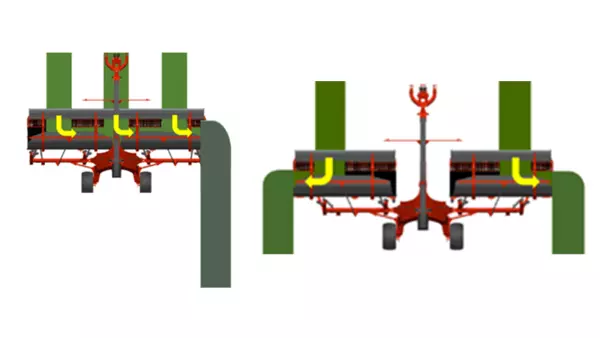| 2 duże płozy ślizgowe regulowane za pomocą korby lub hydraulicznie (jako opcja) | 2 duże płozy ślizgowe regulowane za pomocą korby lub hydraulicznie (jako opcja) | 2 duże płozy ślizgowe regulowane za pomocą terminala | Za pomocą 2 płóz pod każdym podbieraczem, regulowanych terminalem |