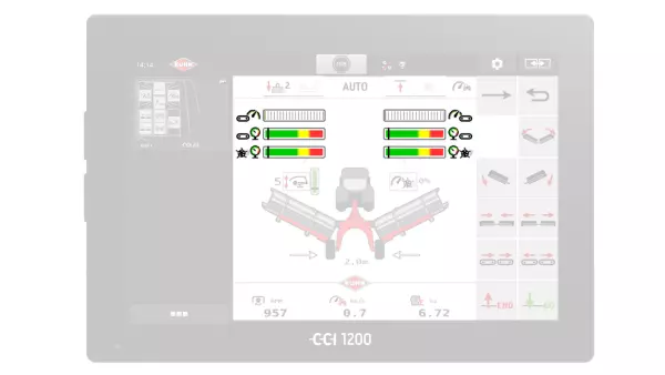 | Jednoczesne lub niezależne unoszenie sekcji, wybór kierunku pracy taśm | Jednoczesne lub niezalezne unoszenie sekcji, wybór kierunku pracy taśm | Pozycja sekcji zgrabiającej, odkładanie pokosu, prędkość podbieracza i taśmy, położenie osłony przeciwwiatrowej, indywidualne podnoszenie, zatrzymanie przenośnika itp. | Pozycja sekcji zgrabiającej, odkładanie pokosu, prędkość podbieracza i taśmy, położenie osłony przeciwwiatrowej, indywidualne podnoszenie, zatrzymanie przenośnika itp. |
